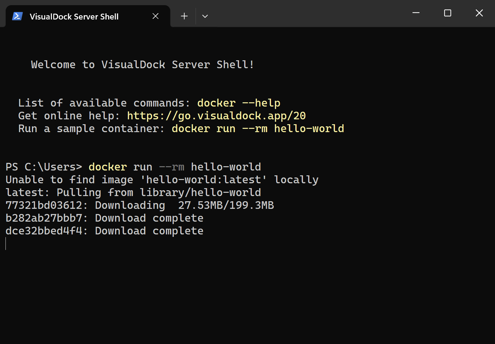 To ensure that your VisualDock Server installation works as expected, you can run the sample Docker container.