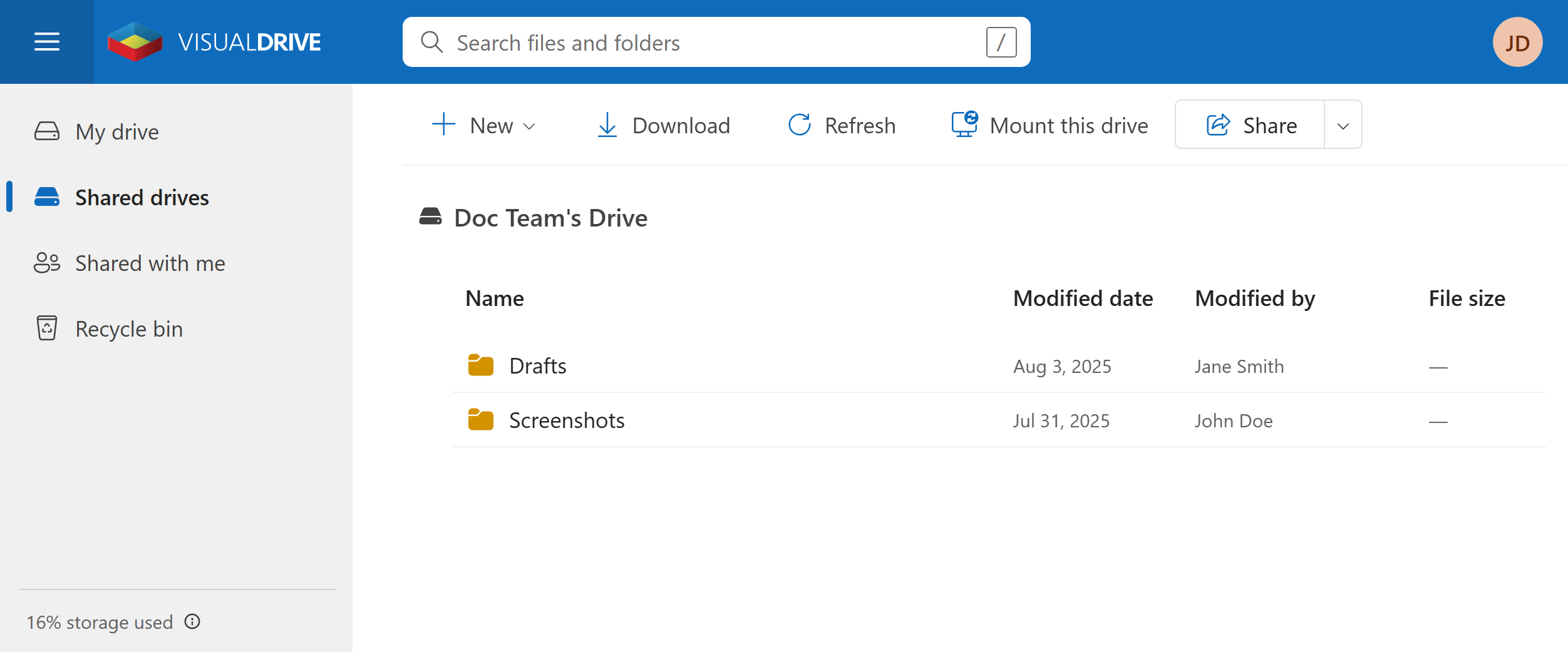 With VisualDrive Server, the IT administrator usually configures your personal drive and specific shared drives to mount and sync automatically on your computer.